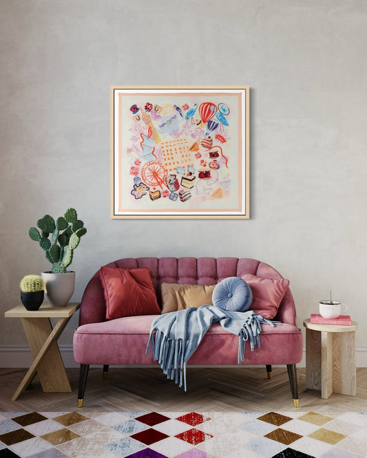 Working with interior designers, collectors and fashion-led clients, our framed scarves bring colour, heritage and character into modern homes.