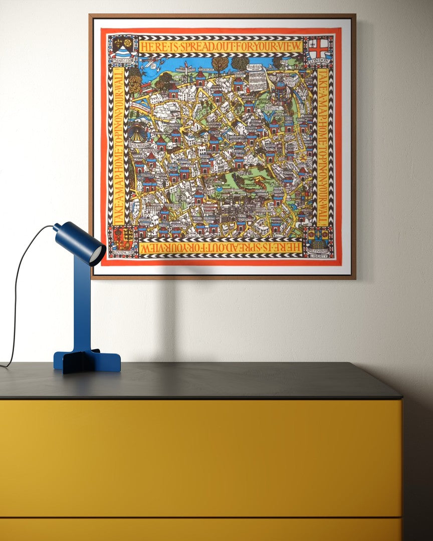 The Liberty Big Smoke Silk Twill Scarf is a captivating study in abstract urban elegance, transformed into a visually striking framed art piece. Measuring 45x45 cm, the scarf features a dynamic interplay of shapes, lines, and textures that evoke the energy and rhythm of city life. The design layers organic curves with geometric forms, creating depth and movement reminiscent of a bustling metropolis seen through an artistic lens.