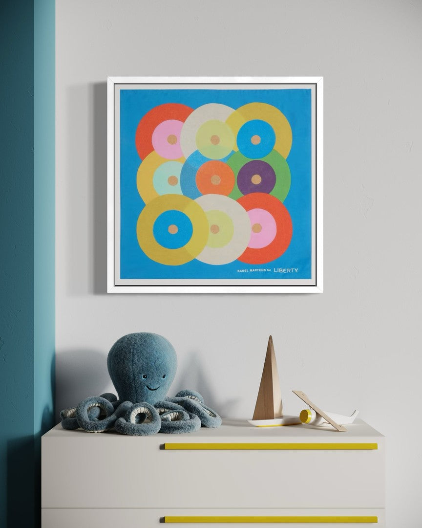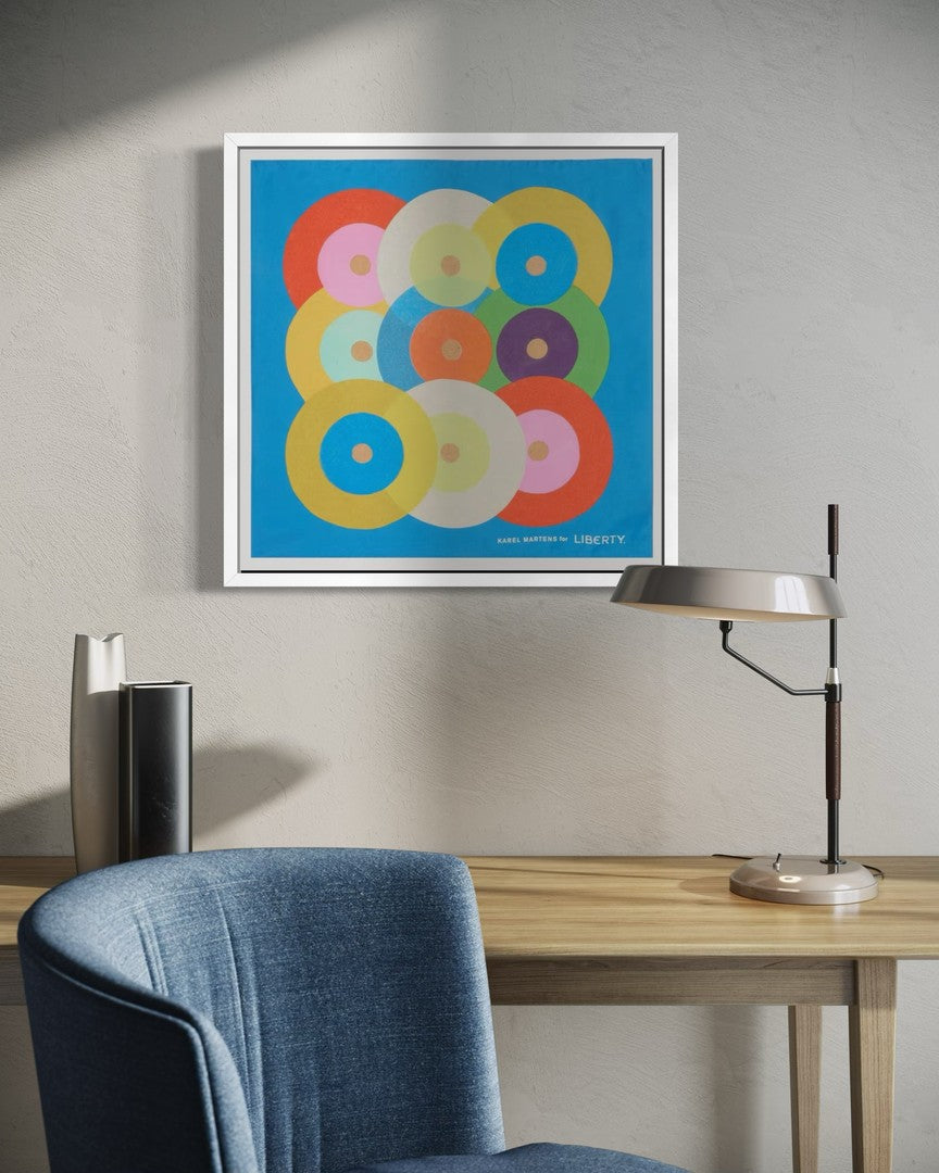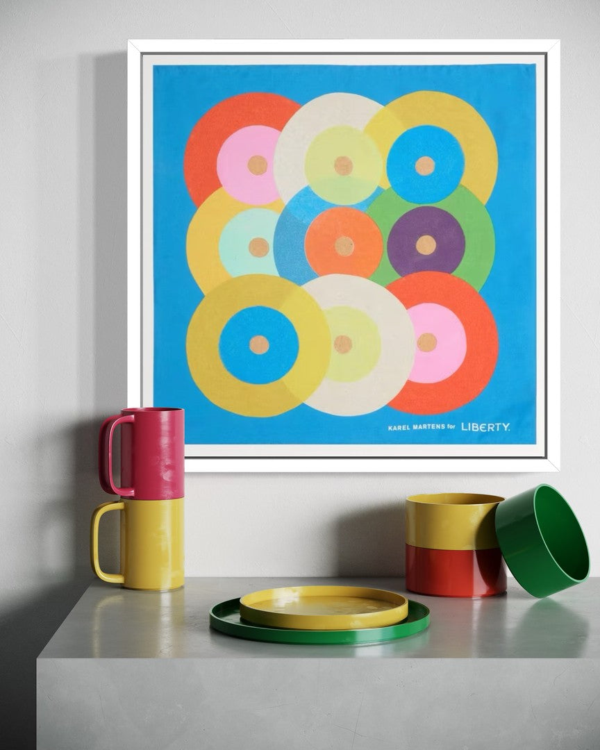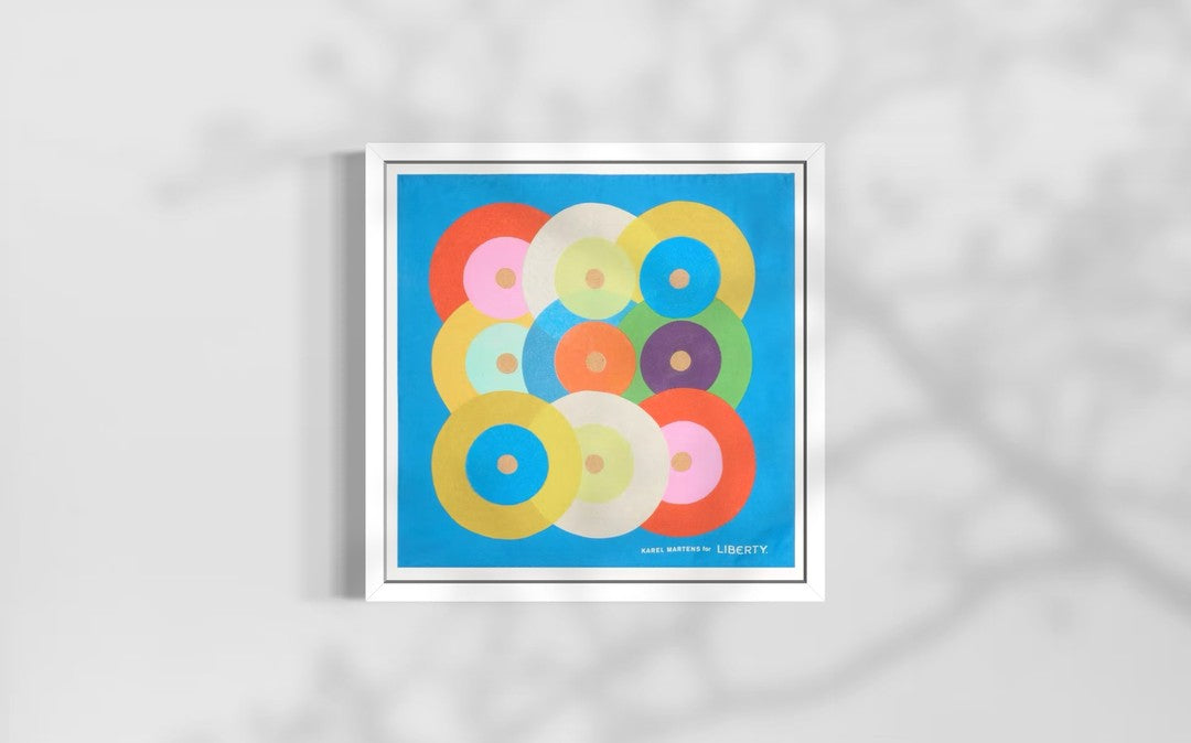 The Liberty, Karel Martens Discus Silk Scarf is a captivating fusion of intricate patterning and vibrant artistry, designed to transform any space. Crafted from luxurious silk, this 45x45 cm square scarf features a mesmerising circular motif reminiscent of a discus, with delicate, radiating lines and concentric detailing that draw the eye inward, creating a sense of rhythm and movement. The design balances geometric precision with organic fluidity, resulting in a harmonious visual composition that evokes both elegance and dynamic energy.